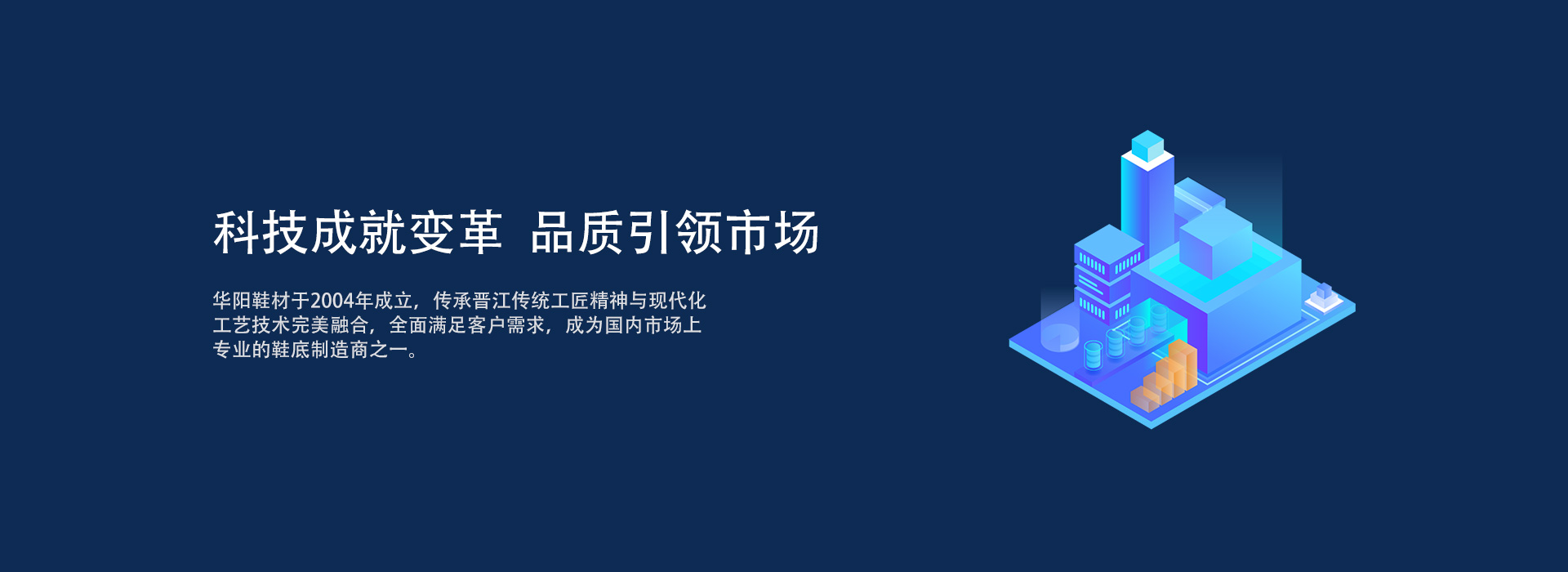 華陽(yáng)鞋材于2004年成立,傳承晉江傳統(tǒng)工匠精神與現(xiàn)代化工藝技術(shù)完美融合,全面滿(mǎn)足客戶(hù)需求,成為國(guó)內(nèi)市場(chǎng)上專(zhuān)業(yè)的鞋底制造商之一。多年來(lái),華陽(yáng)鞋材自主研發(fā)及引進(jìn)最先進(jìn)智能生產(chǎn)設(shè)備,致力于生產(chǎn)EVA一次(IP)成型鞋底、EVA二次(MD)成型鞋底、TPR鞋底、RB(橡膠)鞋底,TPU鞋底及配件及底材組合。